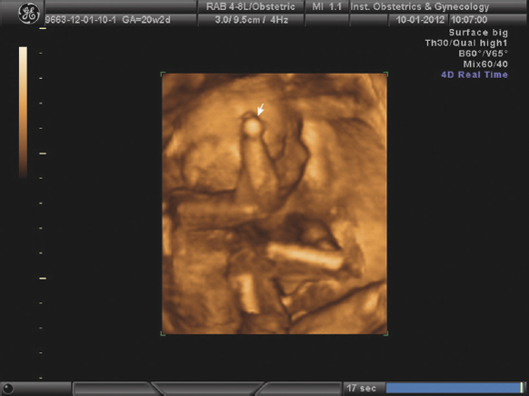 Рис. 3. Омфалоцеле плода, 20 недель беременности