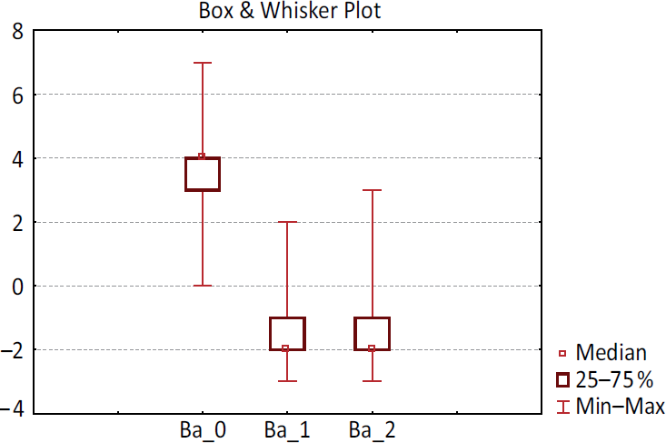 Рис. 3. Динамика значения точки Ba. Ba_0 — значение до операции; Ba_1 — значение через 12 месяцев; Ва_2 — значение через 24 месяца