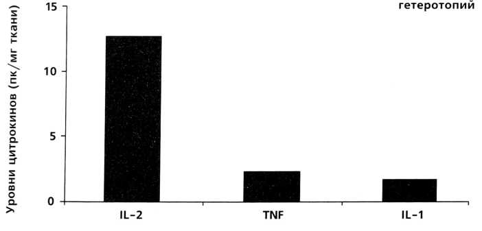 Таким образом, изучение цитокинового профиля супернатантов эндометрия, эндометриоидных гетеротопий, а также перитонеальной жидкости больных НГЭ позволяет конкретизировать механизмы иммунных нарушений на локальном уровне при эндометриозе. Возможно, именно изменения местного иммунитета создают условия для возникновения и развития очагов эндометриоза.