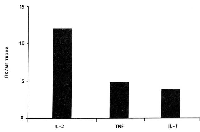 Учитывая тот факт, что IL-6 является антагонистом IL-1ß и TNF, синхронное повышение продукции этих цитокинов можно рассматривать как компенсаторную реакцию, направленную на снижение уровня продукции про- воспалительных цитокинов, попытку сохранения баланса в цитокиновой сети.