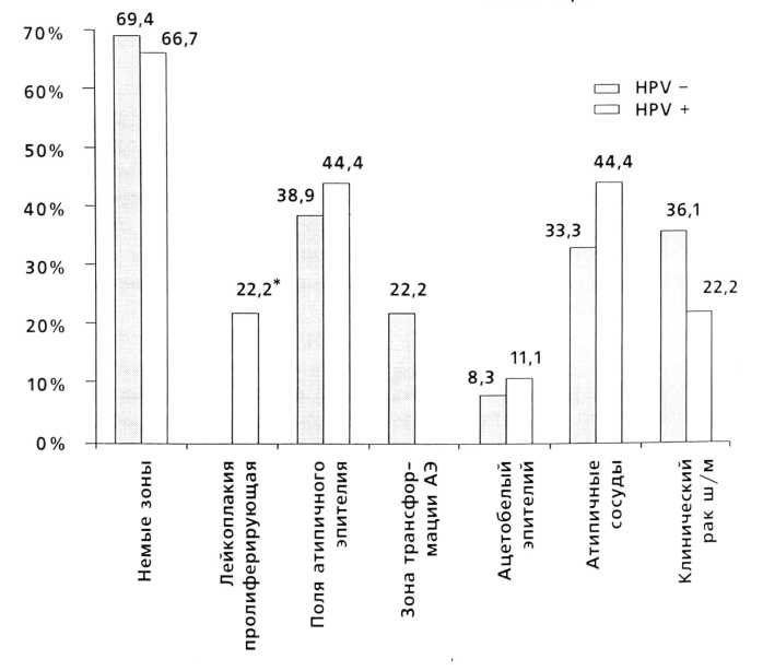 Рисунок. Кольпоскопические проявления у НРV-позитивных и НРV-негативных больных раком шейки матки