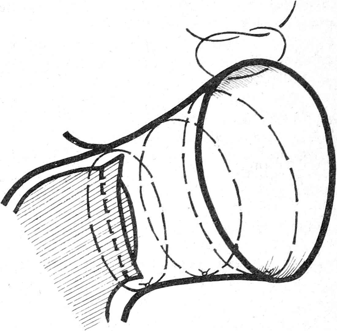 Сотрудником клиники доцентом А. Ф. Агеевым был разработан и применен у 39 больных модифицированный способ надпривратниковой резекции желудка «на выключение». В отличие от известных способов после демукозации дистальной культи желудка мышечно-серозный футляр ушивают последовательно внутренними кисетными швами до полного замыкания ее канала (рис. 2). При осложнении язвы массивным перифокальным инфильтратом разработана и внедрена в клиническую практику трехкомпонентная органосберегающая операция: надпривратниковая заглушка механическим швом, селективная ваготомия, формирование нижнего анизоперистальтического анастомоза на предельно короткой петле, так как он обеспечивает наиболее полноценное дренирование, устраняет ХДН и достаточно эффективно предотвращает возникновение демпинг-синдрома (рис. 3).
