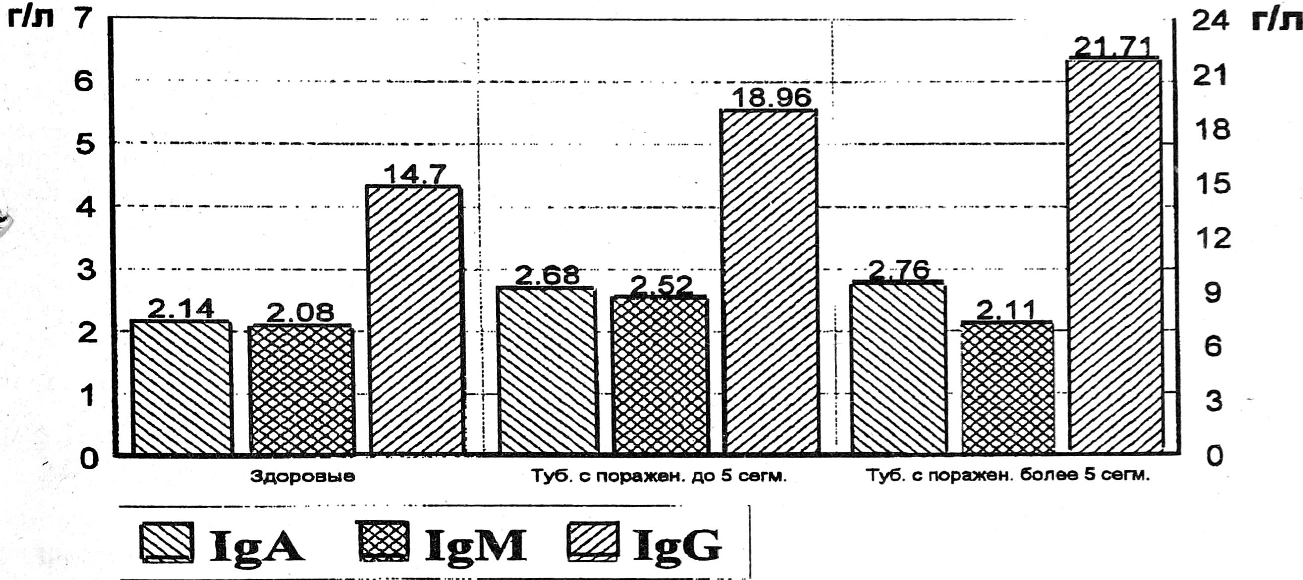 Рис. 2. Уровень иммуноглобулинов классов А, М, G.
