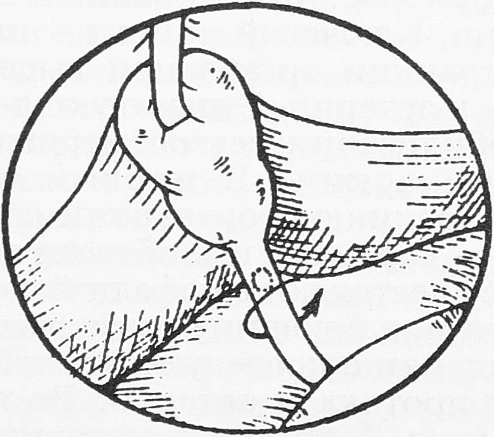 З., 46 лет. Прооперирован 01.02.1992 г. по поводу хронического калькулезного холецистита. При коротком пузырном протоке (3 мм) узкий холедох (6 мм) был принят за и рассечен на 2/3 своей окружности.