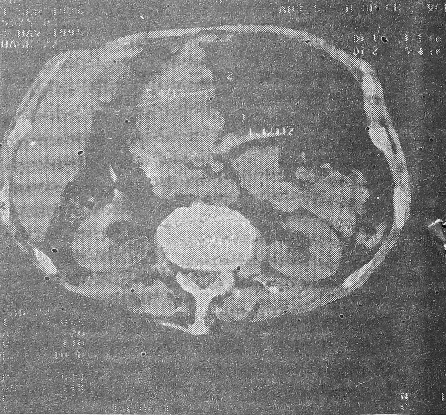 Результаты компьютерно-томографических исследований у больных, страдающих эндофитными формами рака желудка, показали, что толщина стенки желудка в пораженном опухолью месте составила более 1 см (в то время как в нормальных условиях — 0,2—0,4 см). Наряду с утолщением стенки желудка в месте поражения наблюдались и другие признаки (особенно в случае выявления запущенных карцином): неровность, бугристость контуров утолщения, нарушение эластичности стенки желудка в месте поражения, прорастание в соседние анатомические структуры (рис. 1— 3). Таким образом, в диагностике эндофитного рака желудка РКТ является дополнительным методом исследование несущим в большинстве случаев ценную специфическую информацию о характере неопластического процесса в стенке желудка. Ее следует более широко использовать в клинической практике после традиционного рентгенологического и эндоскопического методов. Если традиционной рентгенографии желудка выявляются признаки запущенного опухолевого процесса, то следующим этапом в обследовании такого больного методически рационально использовать РКТ (минуя этап эндоскопического исследования) с целью уточнения распространенности, перспективности дальнейшего оперативного лечения, установления регионарных и отдаленных метастазов.