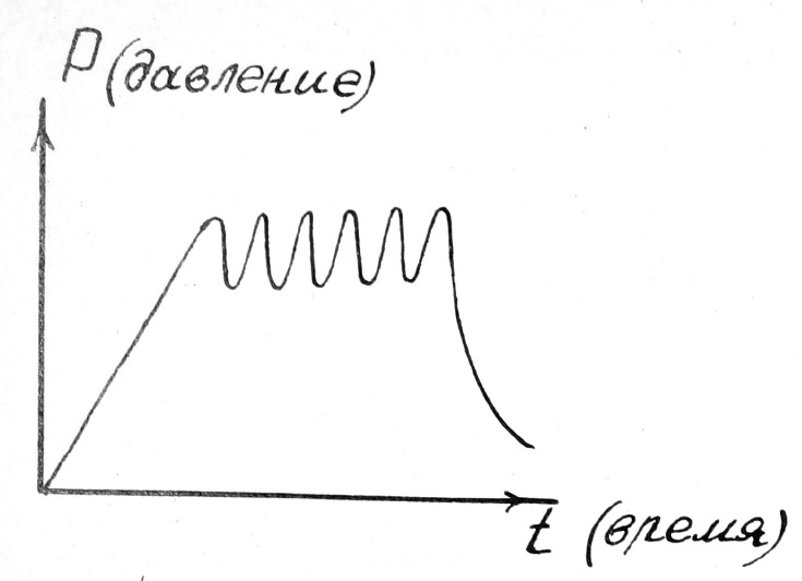 Рис. 4. Постоянный рост давления с резко замедленным временем спада давления — рубцовый стеноз или ущемленный камень БДС.