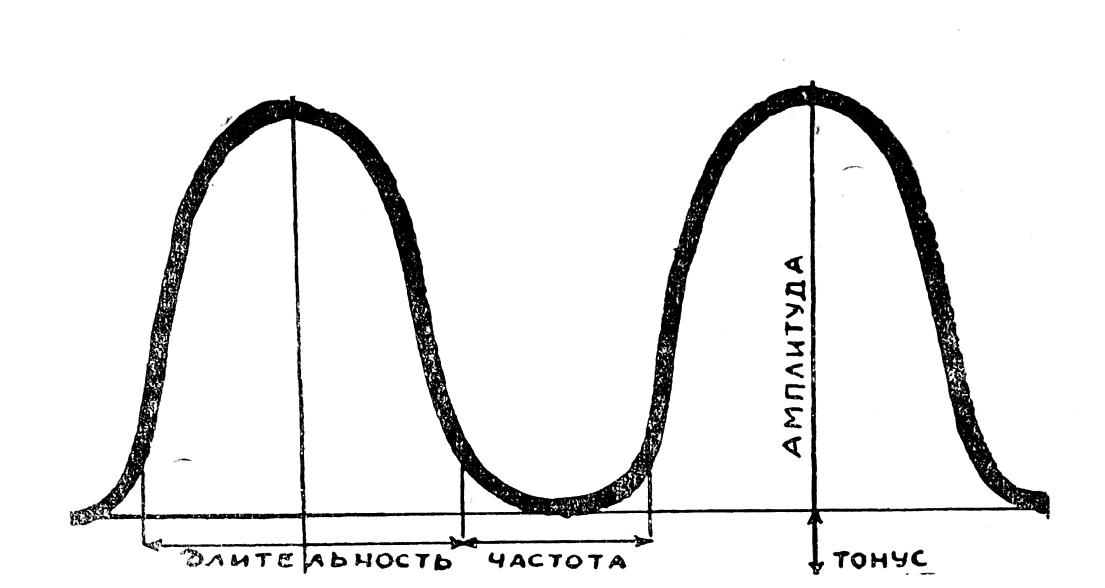 Как известно, основными критериями для оценки сократительной деятельности матки являются тонус, амплитуда и частота (см. рис.)1 Запись сокращения на миллиметровой ленте токографа Лоранда позволяет установить эти критерии в метрических единицах (в миллиметрах) и оценить активность матки путем суммирования этих данных.