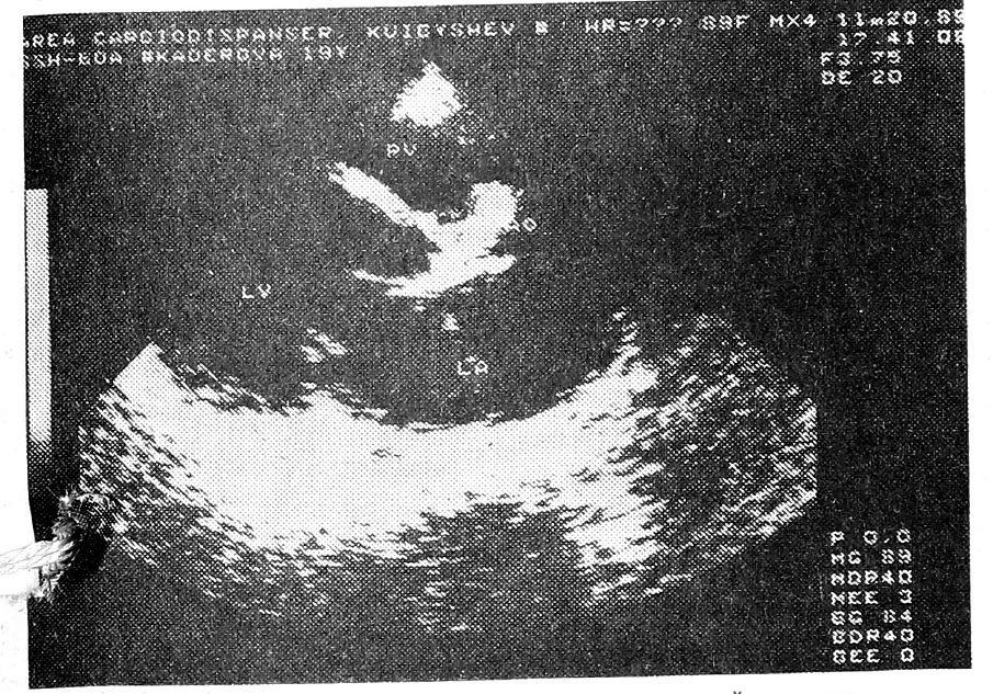 Рис. 1. ЭХОКГ: дилатация всех полостей сердца.