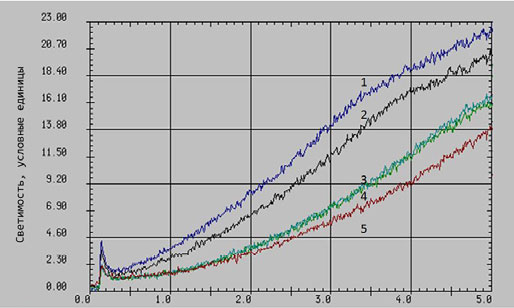 Спонтанная светимость | 1,05±0,04 | 1,1±0,12 | 0,69 | 0,9±0,11 | 0,20 |