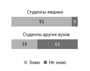 На последний вопрос анкеты «Знаете ли Вы о методах профилактики?» ответивших «знаю» среди студентов-медиков было больше, чем среди студентов других вузов, что представлено на рис. 1.