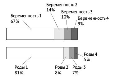 Рис. 2. Частота рождения детей-инвалидов в зависимости от порядкового номера беременности и родов