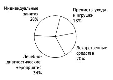 На нужды ребёнка-инвалида доля расходов из семейного бюджета возрастает до 67% за счёт увеличения расходов на лекарственные средства, лечебно-диагностические мероприятия, индивидуальные занятия, предметы ухода и адаптированные для инвалидов игрушки (рис. 5).