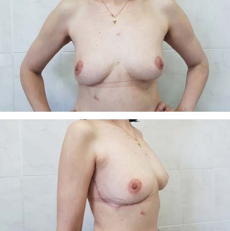 Conclusion. Oncoplastic resection with transferred perforator flaps can be successfully used for breast cancer patients with small/moderate volume breasts; the method does not require symmetrisation surgery, has minimum of complications and allows achieving good esthetic result.