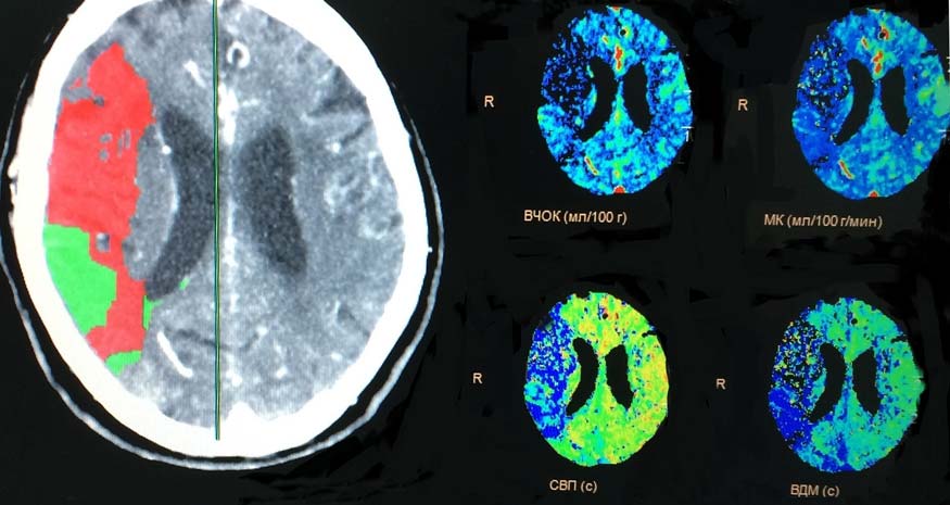 В патогенезе ОНМК происходит локальное снижение церебральной перфузии, приводящей к гипоксии ткани мозга, которое можно выявить при помощи перфузионной компьютерной томографии (КТ).