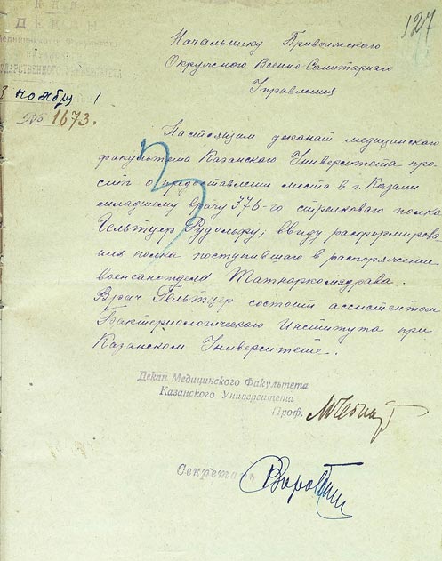 2. Рис. 1. Ходатайство о предоставлении Р.Р. Гельтцеру ­места на кафедре микробиологии медицинского факультета Казанского университета (1921)