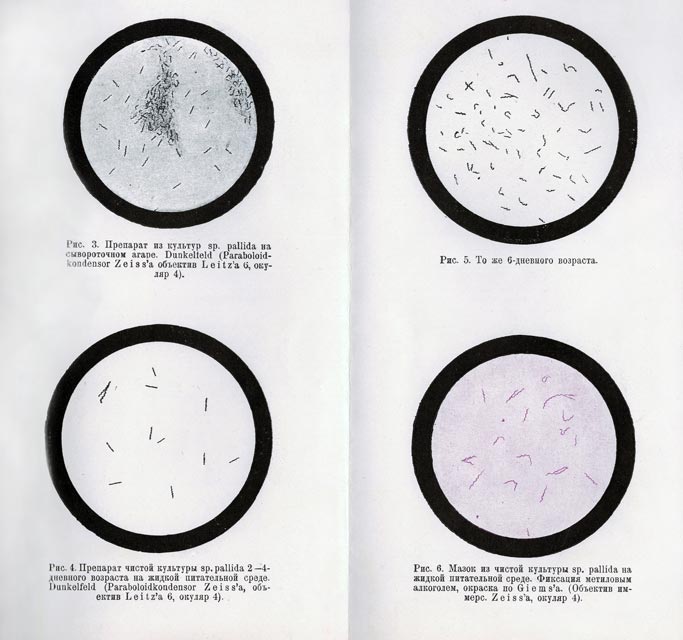 6. Рис. 6. Препараты из культур Treponema pallidum (из монографии Р.Р. Гельтцера «О культивировании бледной спирохеты», 1929)