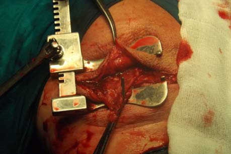 Рис. 4. Вид операционной раны без признаков наружного кровотечения. Этап ушивания операционной раны