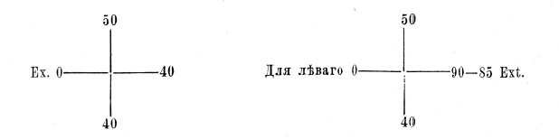 По скіаскопіи на обоихъ Е. При изслѣдованіи зрѣнія найдено: Кос. <1=0,5, у ос> s==o,6. Глазное дно нѣсколько блѣдно, нижніе сосуды по картинѣ не ясны и по калибру уже верхнихъ; вообще сосуды уже, но не рѣзко. Конвергенція: при сильномъ напряженіи перестаетъ работать бинокулярно, но не измѣнена ни одна мышца. Реакція зрачковъ вяла и лѣвый нѣсколько шире праваго. Аккомодаціи у такого больного измѣрить нельзя. (Свѣдѣнія любезно сообщены намъ многоуважаемымъ товарищемъ окулистомъ д-ромъ Думитратко). При изслѣдованіи поля зрѣнія оказалось такимъ образомъ правосторонняя гемианопсія. Существованіе ея сказалось также въ томъ, что больной при писаніи правой рукой, соскальзывалъ перомъ съ бумаги, а потому мы и отправили его къ спеціалисту для точнаго опредѣленія.