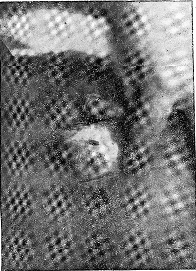 28/V больная была нами оперирована, причем ей была произведена ампутация полового члена. Во время операции обнаружилось, что член состоит из хорошо выраженных кавернозных тел; кавернозных тел уретры не обнаружено, длина его —5 см. На 7-й день были сняты швы, и довольная результатом операции больная выписалась