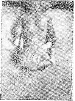 Роженица Д., крестьянка, 40 лет, нормального телосложения. Таз правильный. Рожала 12 раз. Двое родов—двойнями. Все роды нормальные, дети рождались живыми и нормально развитыми, из них некоторые умерли в возрасте 2—5 лет,, по невыясненным причинам. Сифилис отрицается. Со стороны родственников уродов нет. 24/X, в 18 часов больная прибыла в районную больницу. По дороге отходили воды. Роды начались нормально, а затем остановились: родилась головка и верхняя часть туловища, и в таком положении плод застрял. Принимавшая роды акушерка, не справившись сама, пригласила на помощь другую, но и соединенными усилиями (тащили сильно) извлечь плод не удалось. Приглашенный врач обнаружил при внутреннем исследовании сильно натянутую пуповину, которую^ перевязав, перезал, предполагая в короткости ее причину остановки продвижения плода. Последующие сильнейшие тракции успеха не имели. Не справившись с данным случаем, он направил больную в клинику, куда она прибыла спустя 7 часов. По дороге в клинику было несколько обморочных припадков.