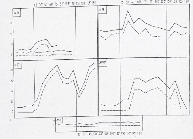 Общее число исследованных нами случаев 50. Исследований сделано 67. Стационарных больных было двадцать. Значительное количество исследований нами произведено у рабочих пивоваренного завода (в порядке диспансеризации), которые употребляют пиво ежедневно, и оно является для них обычным напитком во время ежедневной работы. В ряде случаев исследования с применением повторного раздражения, нами производились повторно с промежутком в один год (зимой 1927— 1928 и зимой 1928—1929 г.). Исследования в 1929 году нами производились совместно с д-ром Мухамедовым.
