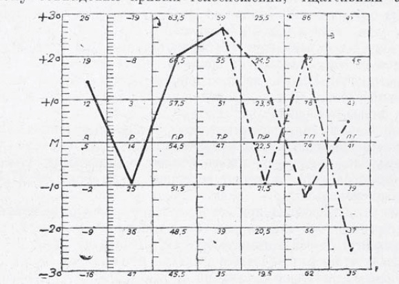 Имея типичный профиль телосложения кретина, можно было сравнивать с ним отдельные профили исследованных нами субъектов. При этом оказалось, что иногда эти профили обнаруживали характерные изгибы и в тех случаях, когда на взгляд можно было говорить только вообще о дисплазиях.