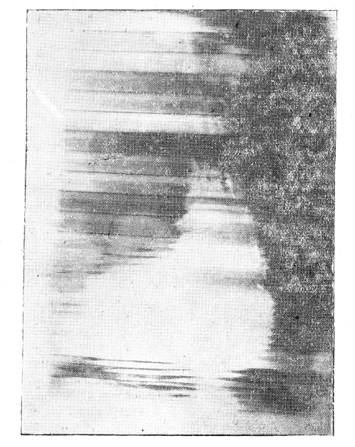Так как время пробега перистальтической волны занимает от 20 до 40 сек., то для регистраций их на кимограмме требуется более продолжительная экспозиция, чем это обычно принято при снимках желудочного аппарата. Методика наших снимков такова: фокусное расстояние 80 см, киловольт 100 макс, миллиампер 10—15, время экспозиции 45—60сек.
