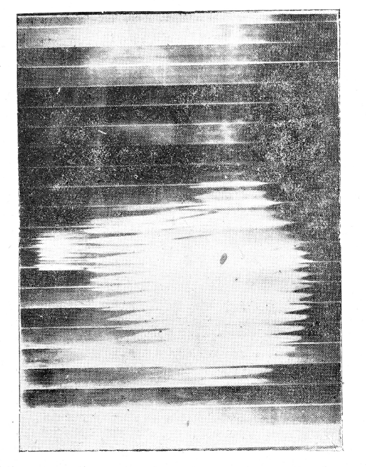 Принцип кимографии, как известно, заключается в следующем: между больным и пленкой помещается свинцовая решетка с узкими горизонтальными щелями. Каждая щель имеет в ширину 1 мм. Расстояние между щелями 12 мм. Во время снимка решетка равномерно передвигается сверху вниз на 12 мм, благодаря чему контуры движущегося органа при прохождении рентгеновского луча через щели изображаются на пленке в виде кривой.