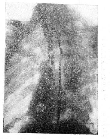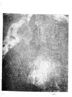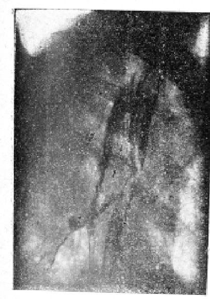 Рентгенодиагностика свища, как осложнения раковой опухоли пищевода, в некоторых случаях может представить известные трудности. Так, в нашем случае № 3 свищевой ход в медиастинум при рентгеноскопии был едва заметен, лишь наклонение туловища дало нам возможность заполнить жидкой контрастной массой 2 слепых хода в медиастинум.
