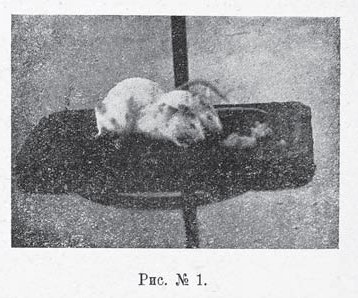 Вторая группа опытов произведена нами на молодых, неполовозрелых мышах с целью выявить влияние утомления на период полового созревания с последующим отражением его на производительной функции. Все опыты были сделаны па 24 мышах, которые могут быть разделены на отдельные серии, причем животные каждой серии были одного помета. Утомление начиналось приблизительно с 20-го дня после рождения и продолжалось до 2г/2 месяцев. Все мышата во время опыта содержались при матери.