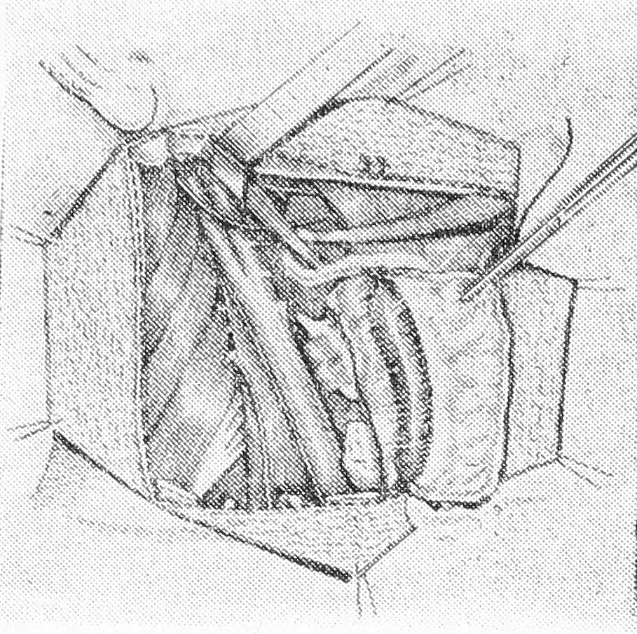 Освободив переднюю поверхность сосцевидного отростка (задняя поверхность была выделена ранее), получают хороший доступ к месту прикрепления грудино-ключично-сосковой мышцы, которую пересекают возле вершины отростка, после чего обнажается гл. splenius capitis, пучки которого образуют острый угол с кивательной мышцей.