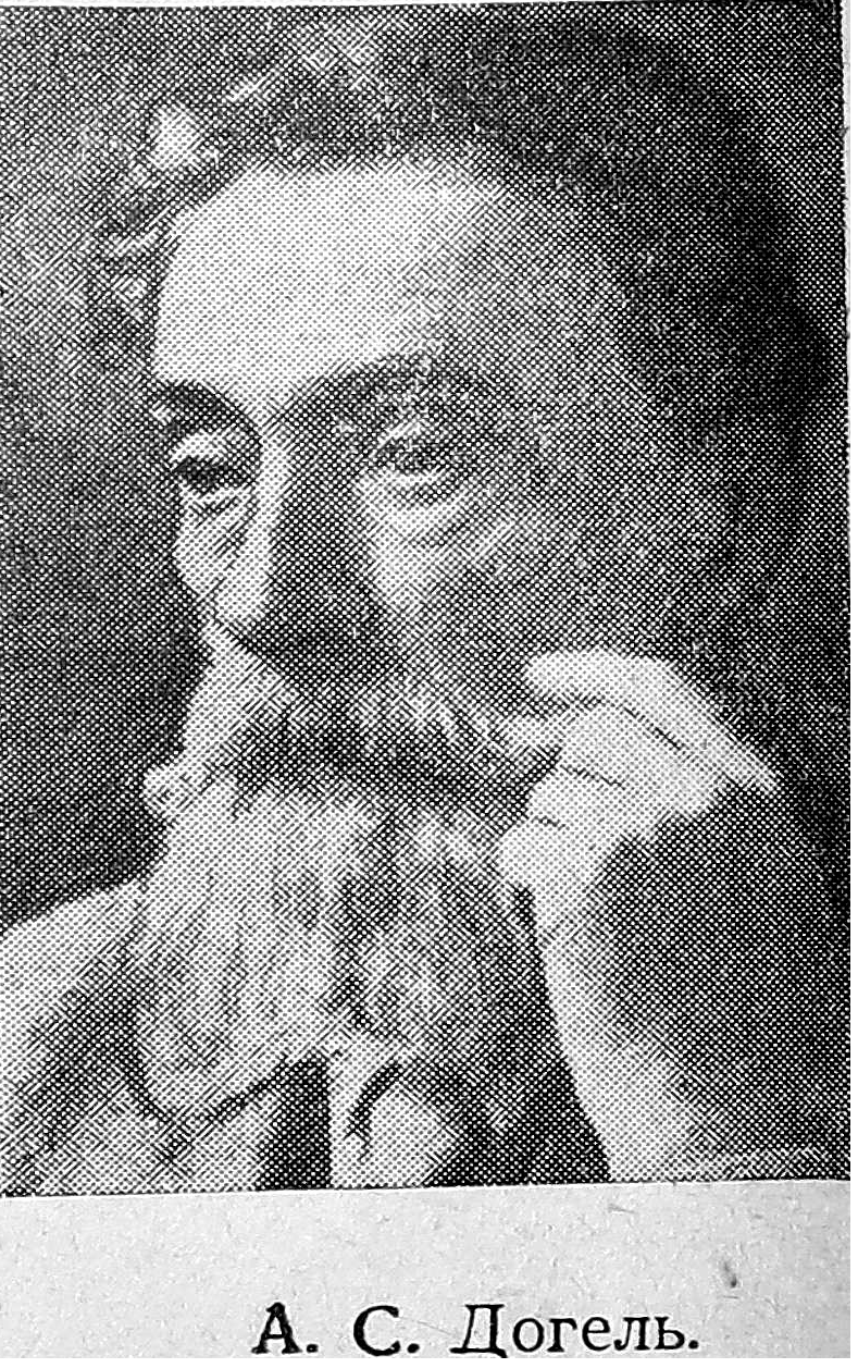 4. Догель А. С. Zur Frage über den feineren Bau des sympathischen Nervensystems bei den Säugetieren. Arch. f. mikr. Anat. u. Entwickl., 1895, Bd. 46; Zwei Arten sympathischen Nervenzellen. Anat. Anz., 1896, Bd. 11, H. 22; Окончания чувствительных нервов в сердце и кровеносных сосудах млекопитающих. Тр. общ. русск. врачей в СПб, 1897, т. 64, в. 4; Die sensiblen Nervenendigungen im Herzen und in den Blutgefässen der Säugetieren. Arch. f. mikr. Anat., 1898, Bd. 52; Über den Bau der Ganglien in den Gefledhten des Darmes und der Gallenblase des Menschen und Säugetieren. Arch. f. Anat. u. Physiol. An. Abt., 1899.