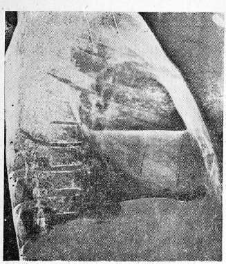 Рис. 4. Левая боковая электрорентгенограмма грудной клетки. Большой абсцесс левого легкого.