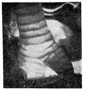 При просвечивании хорошо дифференцируются отдельные швы трахеи и бронхов, наложенные различными способами. Мы пришли к выводу, что трансиллюминация может служить методом распознавания различных патологических процессов в стенке бронха, а также методом контроля наложенных швов.