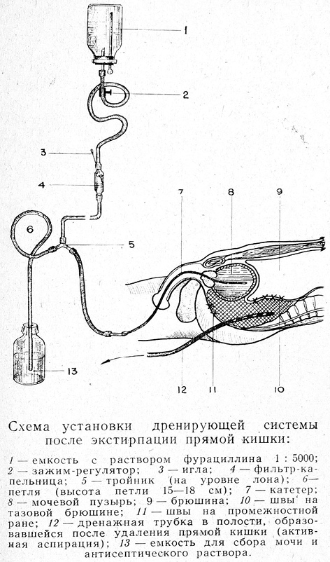 Операции, выполняемые по поводу злокачественных новообразований органов, малого таза, сопровождаются существенным нарушением иннервации и кровоснабжения мочевого пузыря в результате сепаровки прилежащих тканей, последующего отека или воспаления их. Эти причины, равно как и рефлекторное влияние, особенно со стороны промежностной раны, на мочевой пузырь приводят к послеоперационной задержке мочи у 25—50% оперированных больных, что вызывает необходимость искусственного опорожнения мочевого пузыря. Повторная его катетеризация чревата развитием цистита и распространением инфекции на верхние мочевые пути. Введение постоянного катетера на 3 — 5—8 сут не устраняет опасности инфицирования мочевыводящих путей и в то же время задерживает восстановление нормальной функции мочевого пузыря в связи с выключением на этот период пузырного рефлекса.