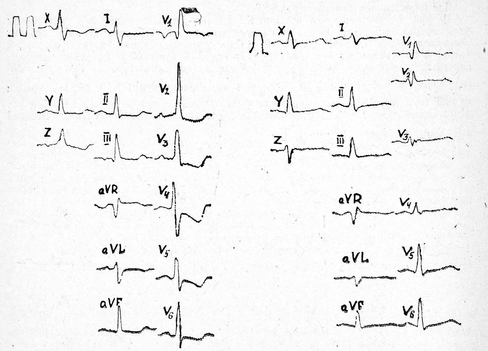 Успешное хирургическое вмешательство создает условия для обратного развития гипертрофии различных отделов сердца. В частности, проведенное при помощи 12 обычных отведений ЭКГ изучение отдаленных исходов хирургического лечения митрального стеноза дало возможность установить обратимость гипертрофии левого предсердия и правого желудочка [1, 5]. Работ, посвященных изучению изменений ЭКГ в корригированных ортогональных отведениях (К00) после митральной комиссуротомии (МК), мы не нашли. Целью настоящей работы являлось выяснение возможностей франковской системы К00 ЭКГ в выявлении обратного развития гипертрофии различных отделов миокарда после МК.