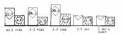 Обозначения: заштрихованные столбики — фагоцитарное число; незаштрихованные — фагоцитарный индекс
