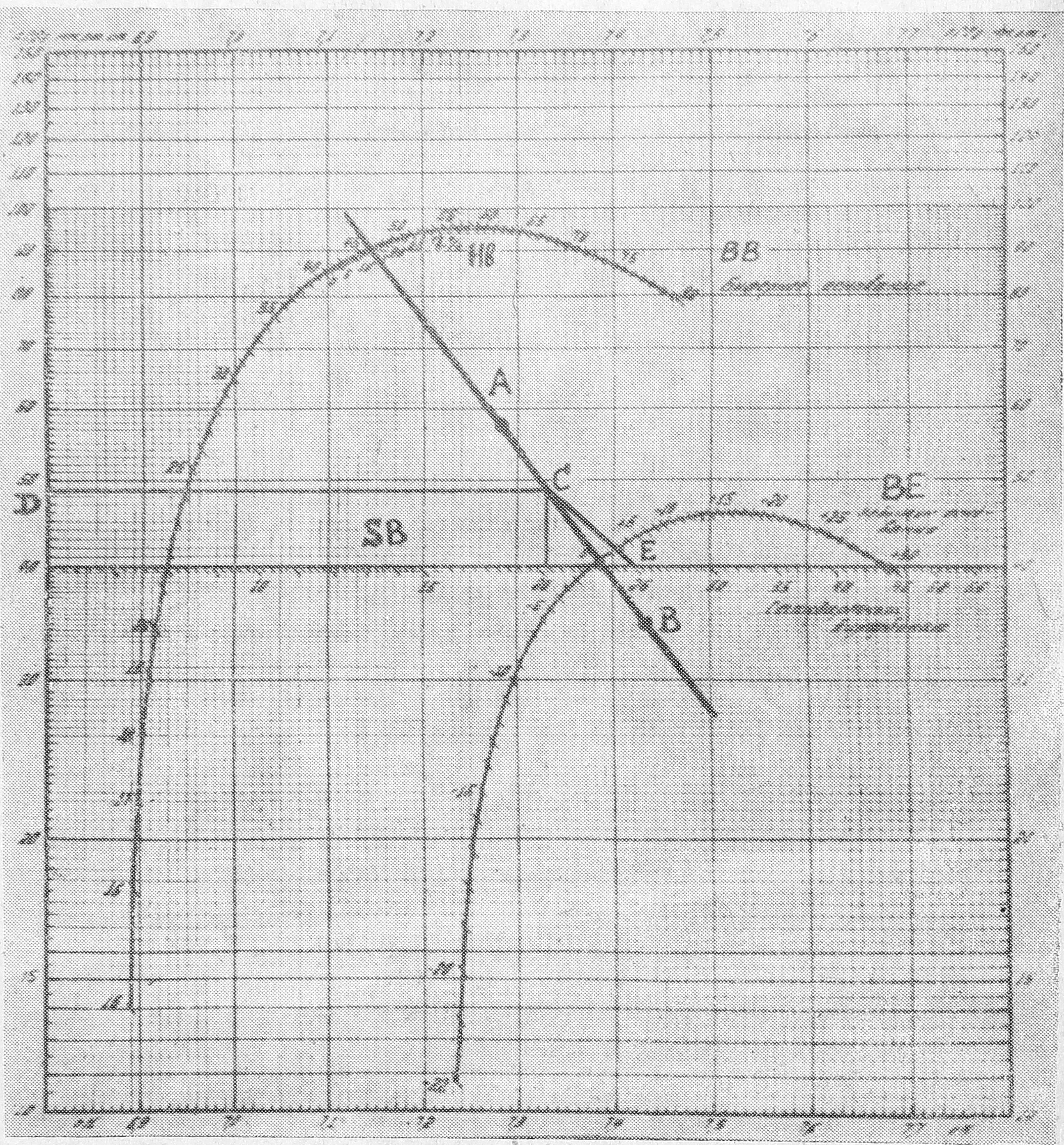 - Две пробы крови эквилибрируют в аппарате газовой смесью с низким и высоким рСО2. Полученные величины pH откладывают на номограмме в точках В и А, соответствующих напряжению углекислого газа в газовых смесях.