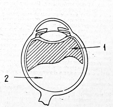 Иридо-хрусталиковая диафрагма делит глаз на передний и задний отделы. Жидкость из переднего отдела оттекает по дренажной системе, глаза. Задний отдел заполнен стекловидным телом, гиалоидная мембрана которого непроницаема для воды. У лиц пожилого возраста наблюдается разжижение заднего отдела стекловидного тела и часто отслоение последнего от сетчатки. В результате здесь образуется заполненная жидкостью камера, которую можно назвать дополнительной камерой глаза. Сохранившийся передний отдел стекловидного тела с гиалоидной мембраной мы рассматриваем как дополнительную диафрагму глаза, отделяющую заднюю камеру от дополнительной (рис. 2).