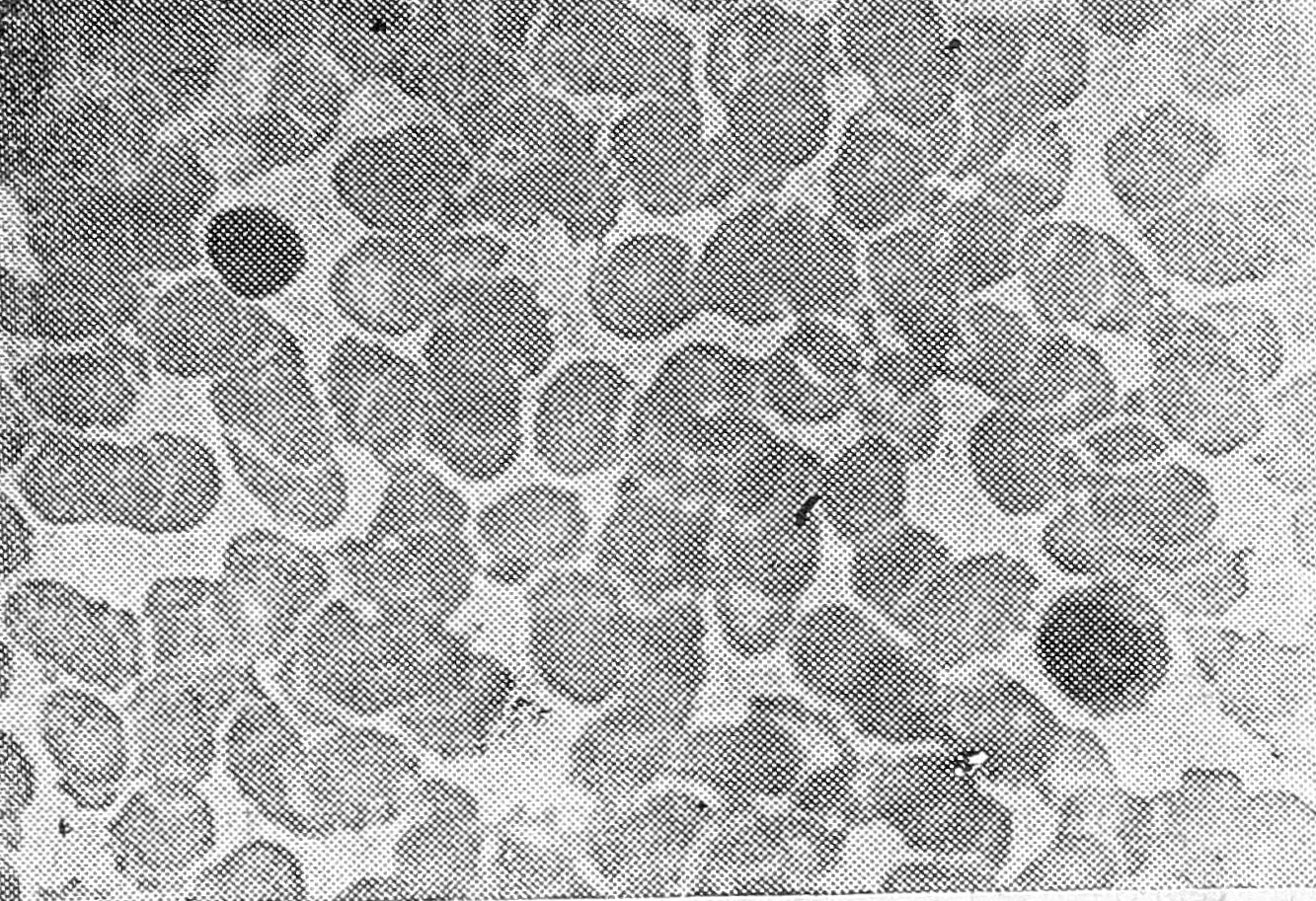 При качественном сравнении мазков периферической крови и концентрата лейкоцитов оказалось, что лейкоконцентрат дает гораздо больше возможностей изучать и структурные изменения клеток при лейкозе. Так, отчетливее становится диссоциация в созревании ядер и цитоплазмы лейкоцитов, чаще встречается гиперсегментация ядер нейтрофилов. Нередко можно было встретить гигантские формы нейтрофильных клеток, и только в концентрате лейкоцитов встречались нейтрофилы с токсической зернистостью цитоплазмы. Это, возможно, связано с тем, что у больных острым лейкозом при быстром разрушении патологических клеток многие из них еще могут содержаться в венозной крови, но уже не доходят до капилляров пальца. Кроме того, так как при лейкопенических формах острого лейкоза в периферическом русле часто мало лейкоцитов, не только качественные морфологические исследования, но даже и подсчет бывает очень затруднен.
