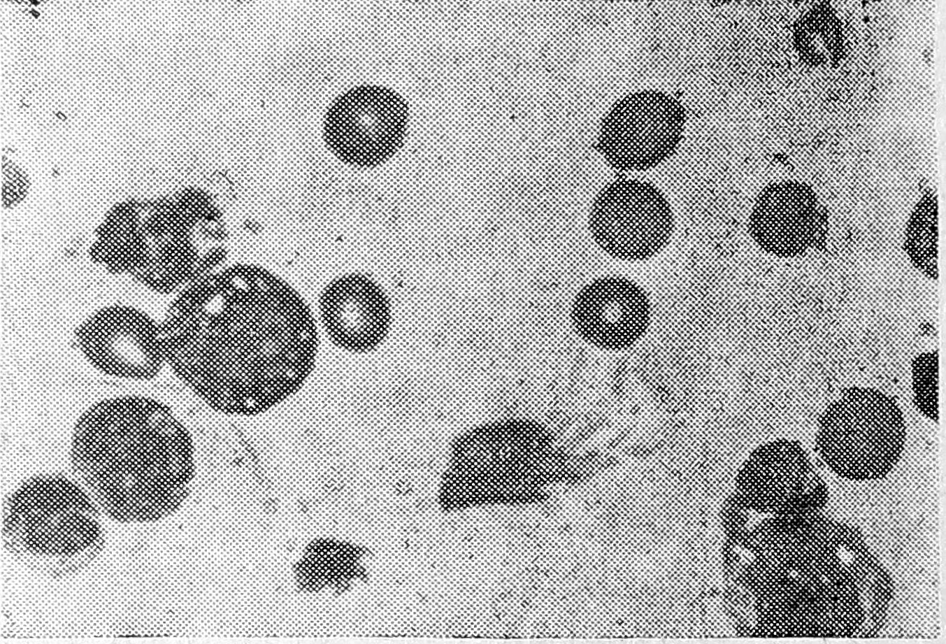 Иллюстрацией к сказанному может служить рис. 4 (лейкоконцентрат больной И. с острым лейкозом), на котором видны вакуолизированные и дегенеративно измененные нейтрофильные клетки при совершенно нормальных эритроцитах, а также разрушенная клетка.