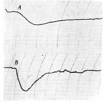 Скорость образования пластиночных агрегатов, о которой судили по величине угла, была замедлена на 30% по отношению к норме. В то же время образовавшиеся агрегаты имели большую стойкость, так как распад их (дезагрегация) был неполным и составлял 81±4% (Р <0,05) при норме 95±1%. На рисунке представлены оригинальные агрега-тограммы больного ревматоидным артритом (А) и здорового (Б). Остальные показатели АДФ-агрегации тромбоцитов существенно не отличались от средних данных у здоровых лиц.