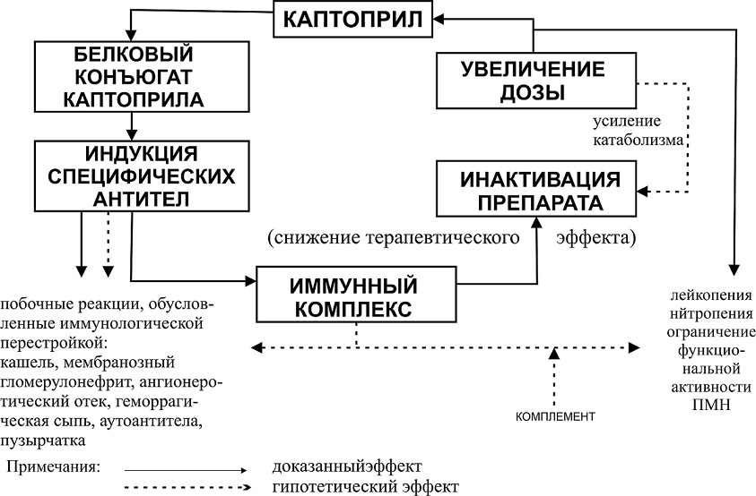 Схема развития возможных осложнений при длительном применении каптоприла.