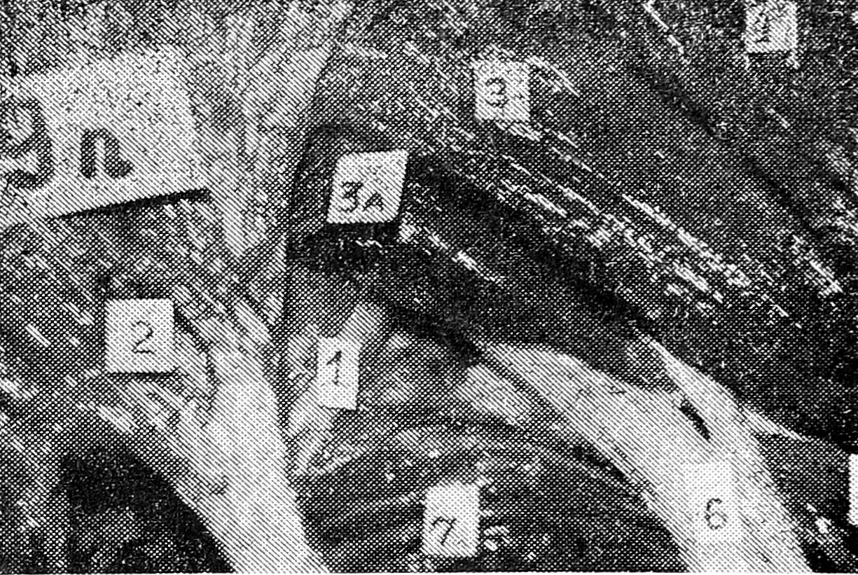 Рис. 2. Фотография зоны подгрушевидного пространства. 1—половой нерв; 2 — крестцово-бугорная связка; 3 — грушевидная мышца (верхнее брюшко); За — грушевидная мышца (нижнее брюшко); 6 — седалищный нерв (оба нерва на данном препарате — с высоким делением на два ствола); 7 — внутренняя запирательная мышца, над ней — верхняя близнецовая.