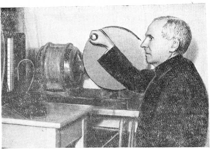 Рис. 1. В дальнейшей работе рукоятка, прикреплённая к диску, была значительно удлинена, чтобы больной мог держаться за нее двумя руками