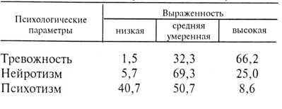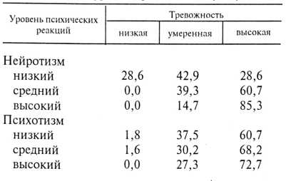 Таблица 2. Зависимость проявлений нейротизма и психотизма от уровня тревожности (в %)