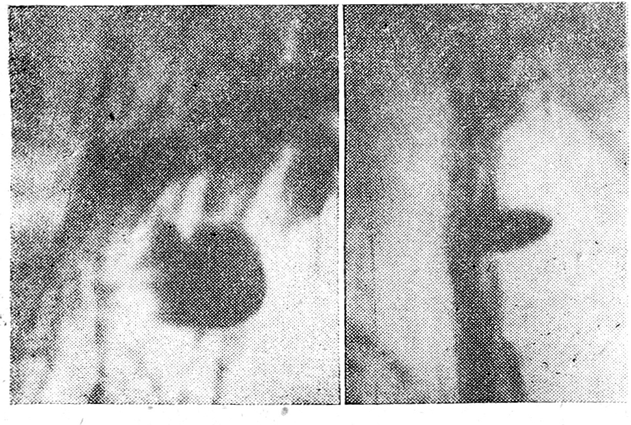 Поэтому, как мы считаем, рентгенолог обязан: 1) установить наличие дивертикула (врожденного или приобретенного) и 2) на основании клинико-рентгенологических данных уточнить возможность объяснения имеющихся жалоб больного наличием выявленного дивертикула безотносительно к его этиологии.