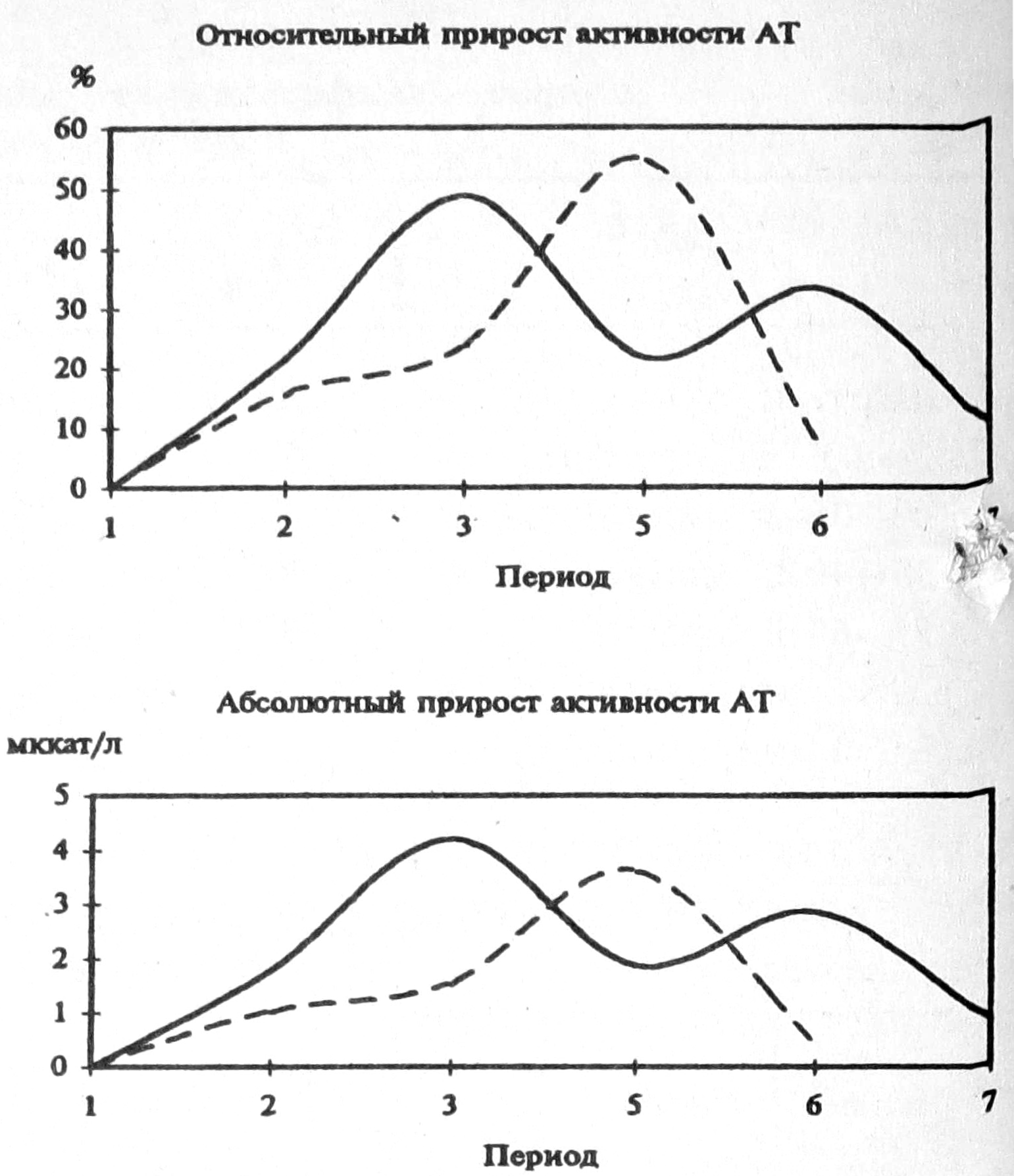 Довольно быстрое возвращение активности всех ферментов к исходному значению через 30—60 минут после мышечной нагрузки означает, что период полужизни активных форм изученных ферментов довольно кратковременный и существуют механизмы инактивации и/или активного выведения их из крови, несмотря на все еще сохраняющуюся повышенную их активность в лимфе. Обнаружение повышенной активности ферментов в клинических условий является показателем продолжающегося проникновения ферментов через цитоплазматические мембраны в лимфу и кровь.