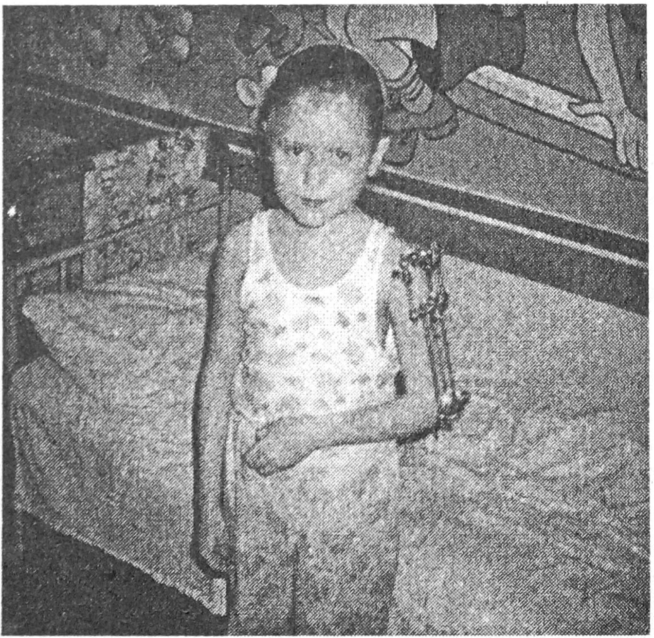 Всего в отделении в настоящее время с использованием данного аппарата прооперировано 9 больных (перелом плечевой кости — у 2 детей, перелом костей предплечья — у 5 детей и у 2 взрослых пациентов). У всех больных получены консолидация, отличные и хорошие функциональные результаты. Отдаленные исходы операции пока не изучены. В качестве примера приводим рентгенограммы больных, прооперированных с помощью разработанной конструкции.