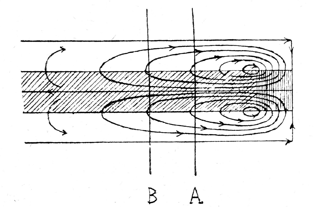 Если присмотреться ближе к поперечному сечению А, то будет ясно, что количество электричества, которое мы с Негmаnn’ом предполагаем идущим в ядре на поперечном срезе А справа налево, должно быть в общей сложности так же велико, как и количество электричества, проходящее через тот же поперечный срез А в обратном направлении в оболочке, следовательно слева направо.